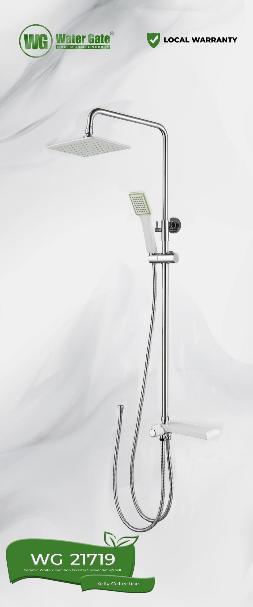 Water Gate WG 21719 | Ceramic White 2 Function Diverter Shower Set with Shelf