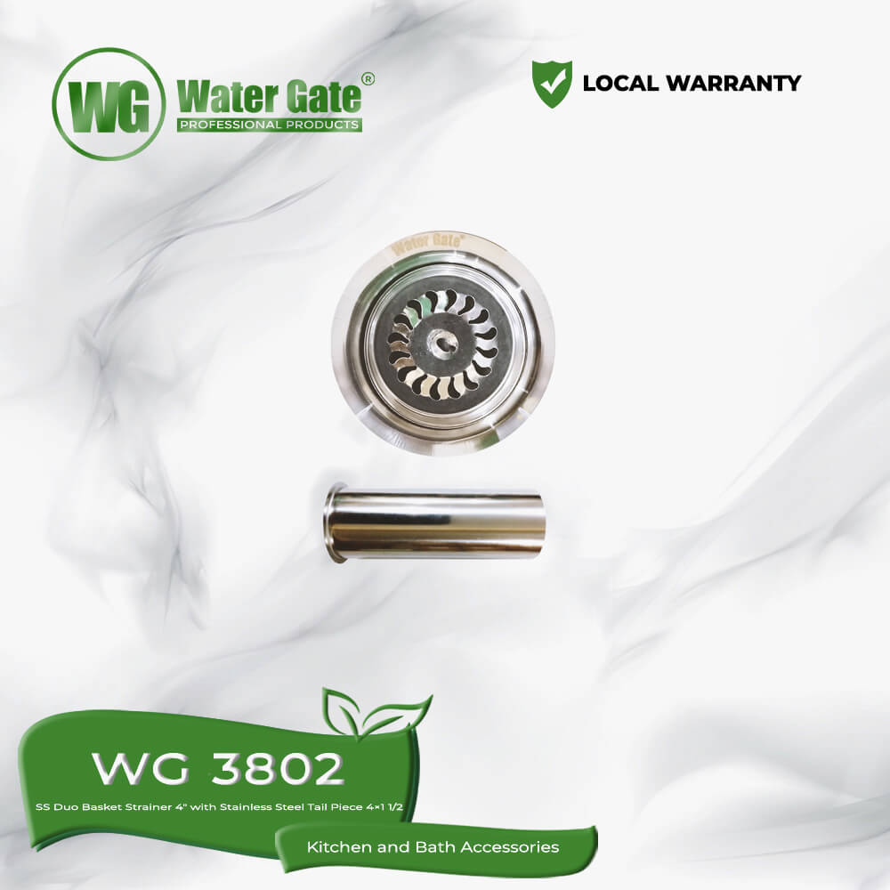 Water Gate WG 3802 | Stainless Steel Duo Basket Strainer 4″ with Stainless Steel Tail Piece 4×1 1/2